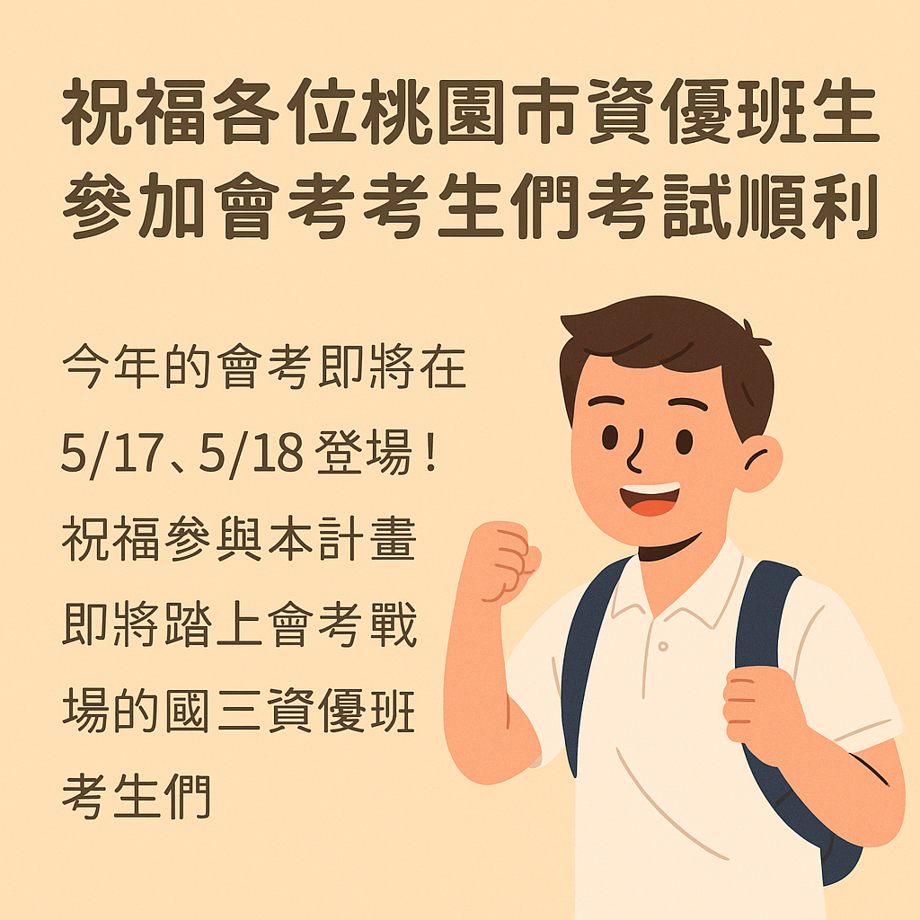 【相關訊息公告】祝福各位桃園市資優班學生,參加會考考生們考試順利